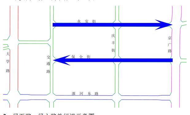 2、保全街(京广路至交通路路段)自东向西单行,禁止自西向东通行;