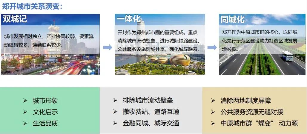 省政府工作报告在2021年重点工作中明确,要探索设立郑开同城化示范区,引导产业在都市圈节点城市合理布局、错位发展,不断扩大基础设施、公共服务一体化覆盖面。
