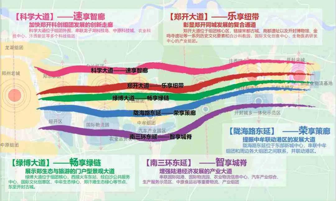 据了解,这5条快速通道方案分别是科学大道、郑开大道、绿博大道、陇海快速路东延、南三环东延,总体设计理念是要实现“30分钟通勤交通圈”、“80公里/小时速度”的快速通达目标,以及通过差异化多彩通道、满足郑开同城化多样交通需求等愿景。