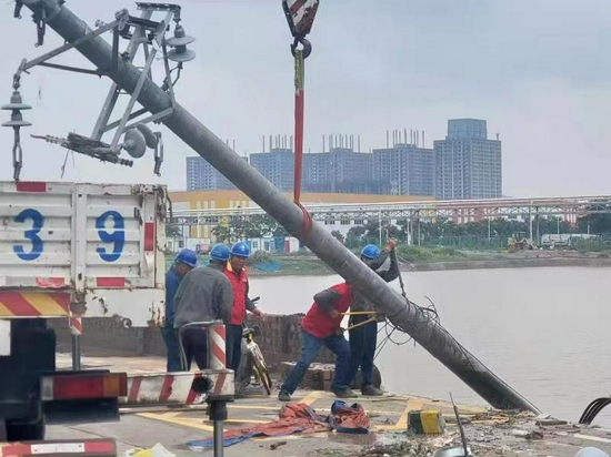 国网郑州供电公司抢修人员对受损线路杆塔开展抢修作业,确保线路尽快恢复供电。韩彦 摄