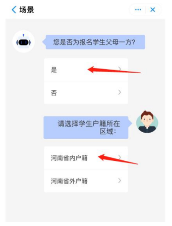 3.选择报名场景: 随迁子女(第二批次)→学生父母一方→河南省内户籍