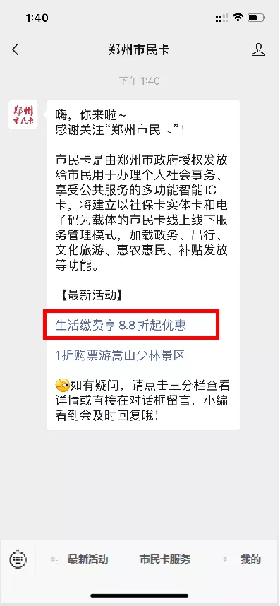 关注“郑州市民卡”公众号点击活动入口