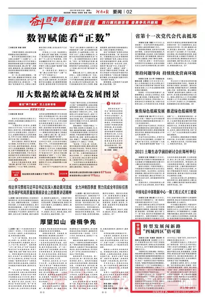 站在新的历史起点上,平顶山又开启了新的征程!前不久召开的平顶山市第十次党代会明确提出,锚定“两个确保”、主动对标省委“十大战略”,着力建设中国尼龙城、新型能源城、文旅康养城、绿色食品城“四城”和高质量转型发展先行区、城乡融合发展试验区、黄淮流域生态建设示范区、社会治理现代化样板区“四区”的战略愿景。