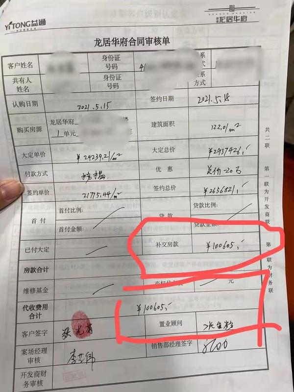 “就是在这个地方置业顾问领着我到财务室刷的卡,然后分别找案场经理、销售部经理签的字。”张女士表示,她从9月初就开始联系龙居华府营销中心处理这个事情,三个月以来,她几乎跑遍了郑州所有的相关部门,但是推到现在,也没有人具体来管这个事情。