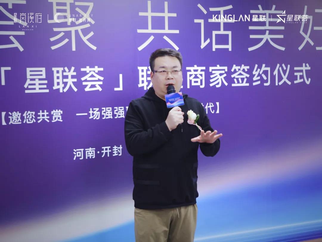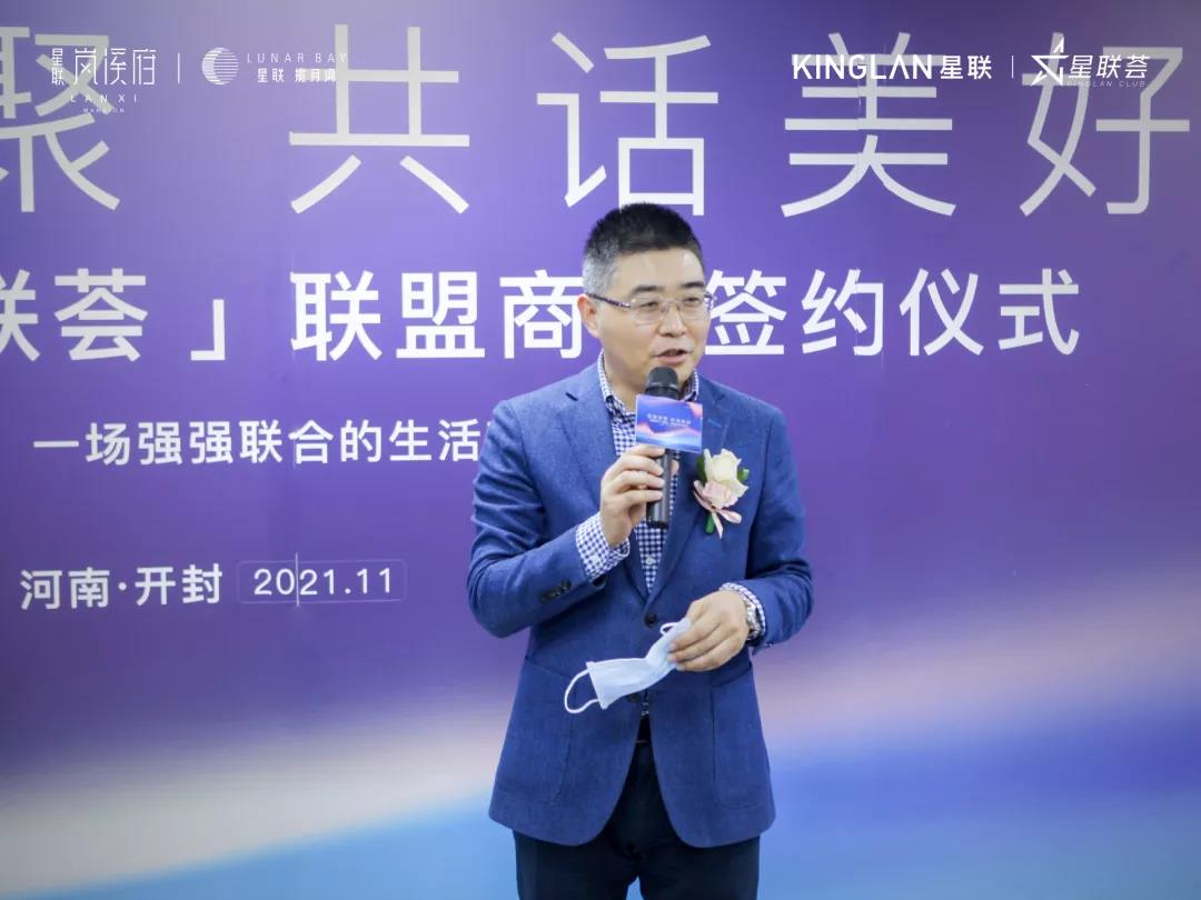 在签约仪式上,星联地产开封城市公司副总经理王晓朋先生发表了真挚诚恳的致辞,浅谈星联地产的企业文化及星联开封城市公司的布局与发展,并提出通过建立全面、快捷、方便的合作渠道,为业主提供更优质的服务做出贡献。