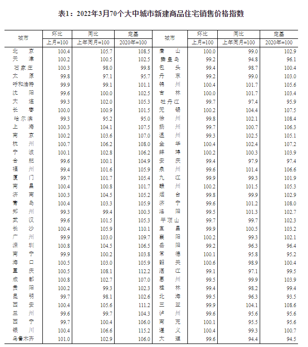 ——国家统计局城市司首席统计师绳国庆解读2022年3月份商品住宅销售价格变动情况统计数据