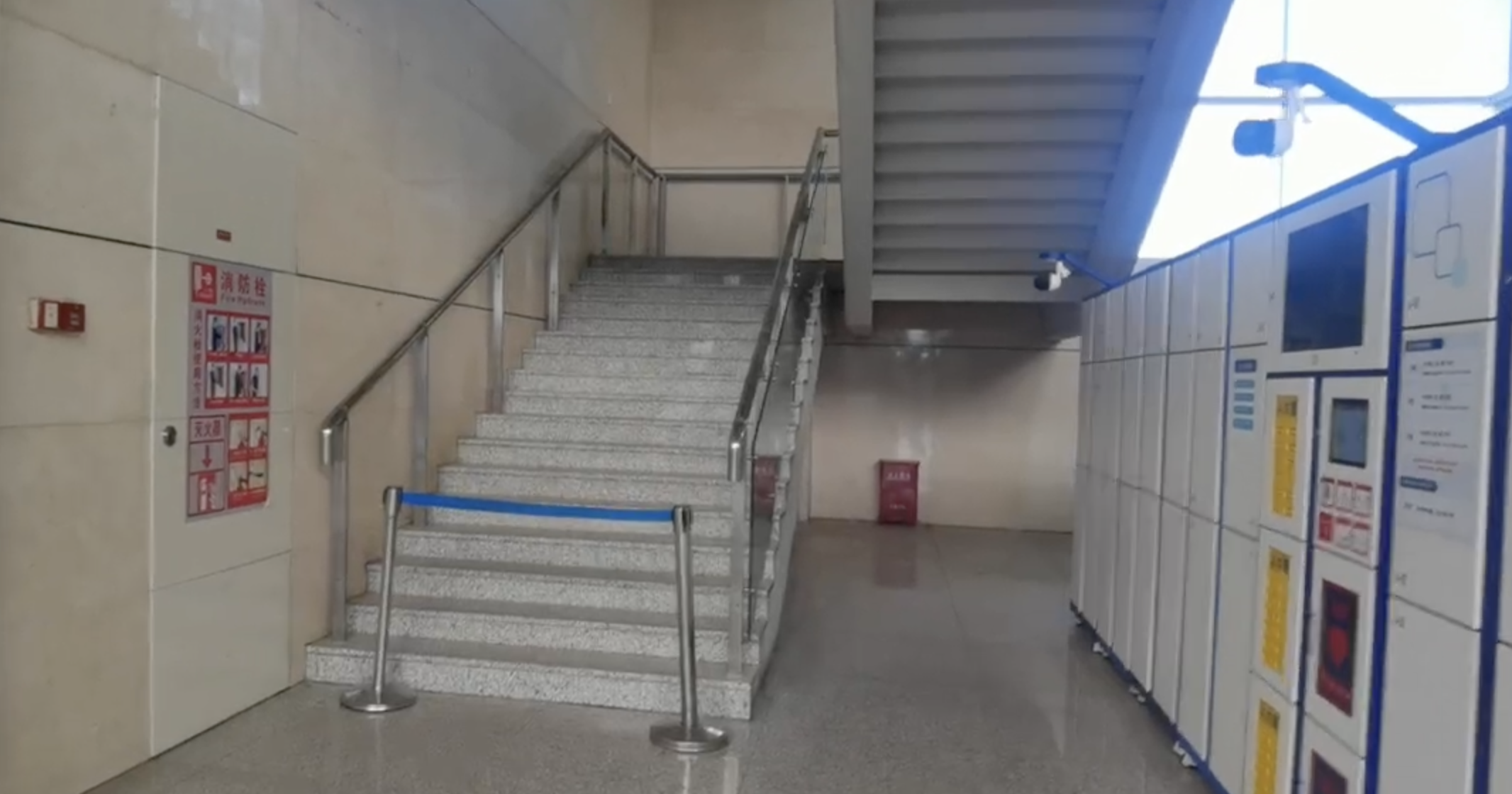 大河报·豫视频记者在候车厅转了一圈,发现只有一个标着“中国铁路消费扶贫柜”的柜子,仅有一瓶矿泉水,其余自动售货机全部显示“缺货”。而通往中间夹层的商业,也是全部关门状态,通往商业夹层的步梯被拉带阻隔,禁止乘客上下步梯。