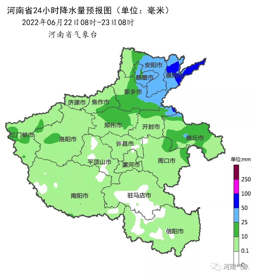目前,6月21日-7月20日气候预测已经发布。预计安阳、鹤壁、濮阳、新乡、焦作、济源、三门峡、洛阳和信阳降水偏多0~2成,开封、商丘、许昌、平顶山、漯河、周口、南阳和驻马店偏多2~3成。豫西100~130㎜,豫北130~160㎜,黄淮之间160~220㎜,淮河以南220~250㎜。