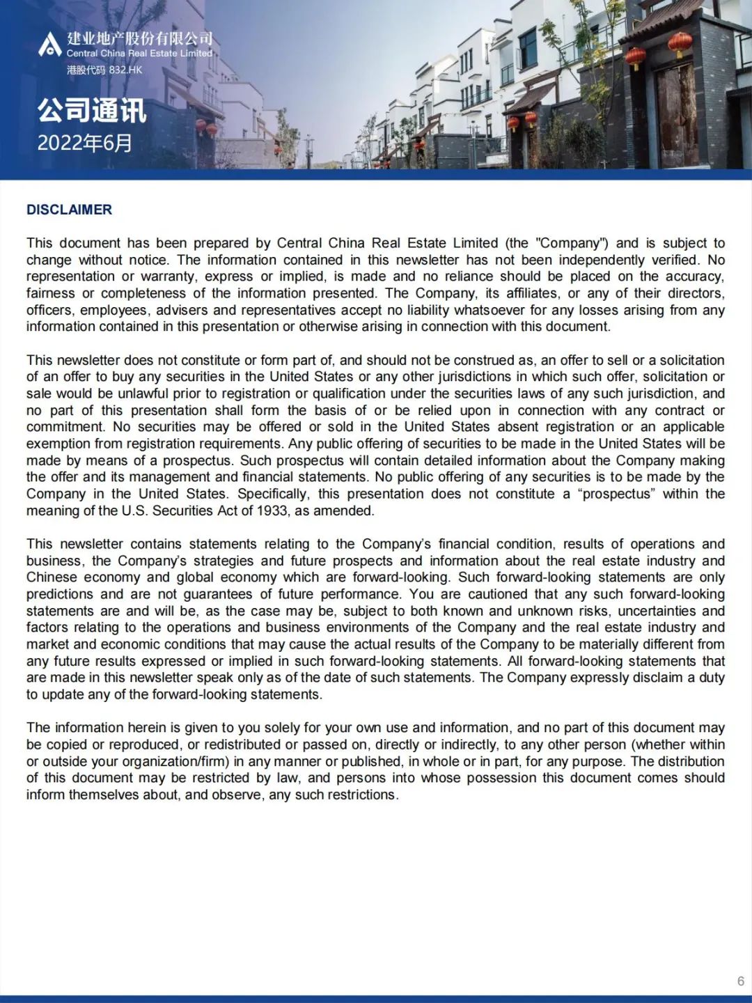 ✓ 建业地产二零二二年首五月物业合同销售达人民币110.7亿元