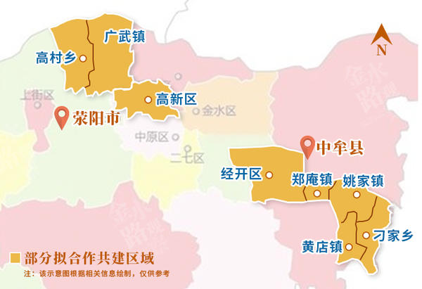 根据此前披露和相关人士介绍,中牟四个乡镇部分区域、荥阳两个乡镇,将成为共建区域。