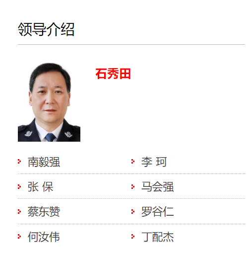 目前,郑州市公安局领导班子为“一正八副”,石秀田,现任河南省公安厅党委委员,郑州市人民政府副市长、党组成员,市公安局党委书记、局长、督察长,主持全面工作。
