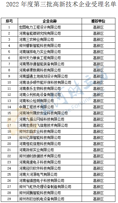 其中,宏图电力工程设计有限公司、河南省能碳研究院有限公司、河南三农种业有限公司、郑州睿联智能科技有限公司等在列。