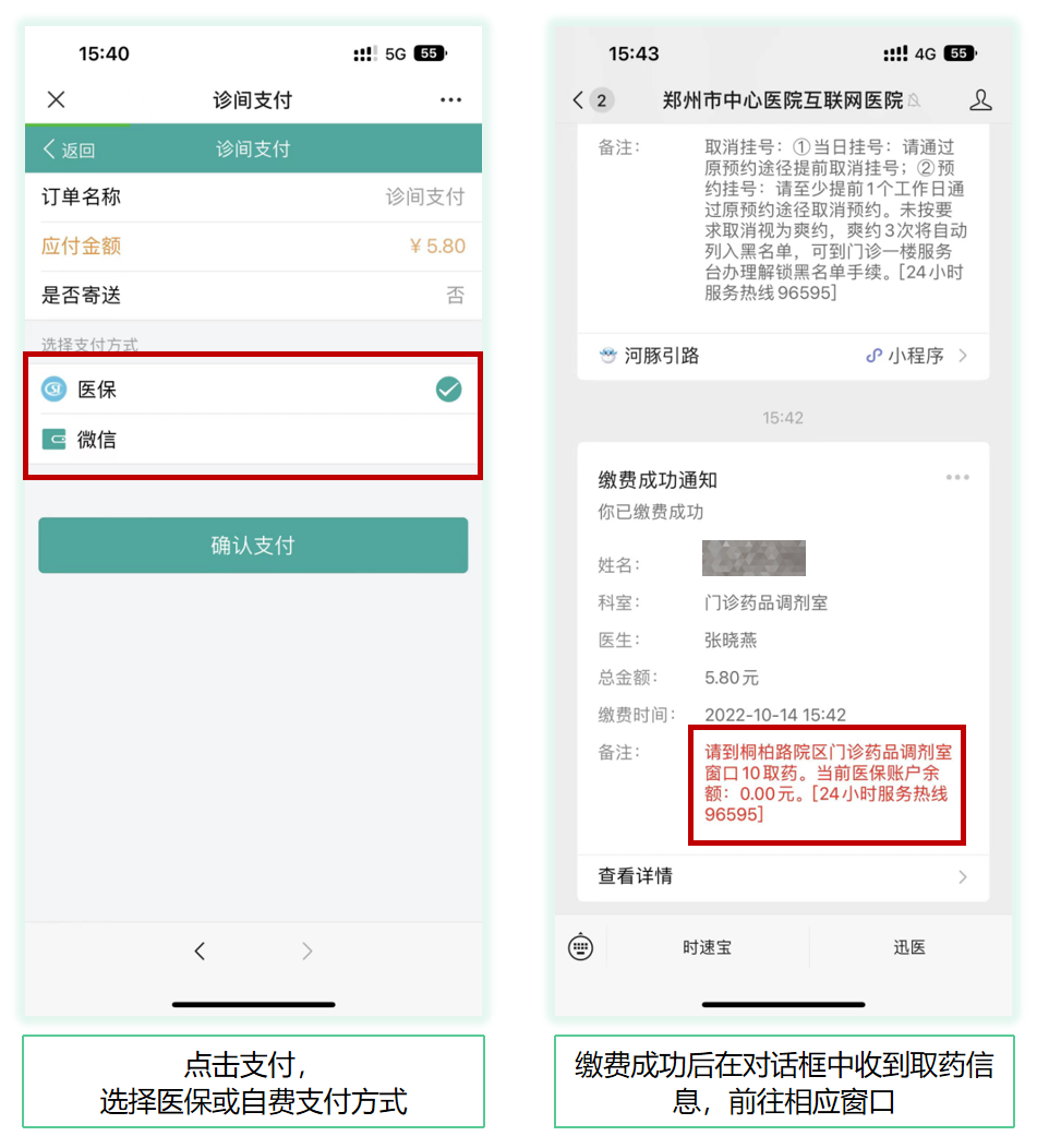 2.接收到药品医嘱支付信息,点击查看医嘱详情,根据提示点击支付。