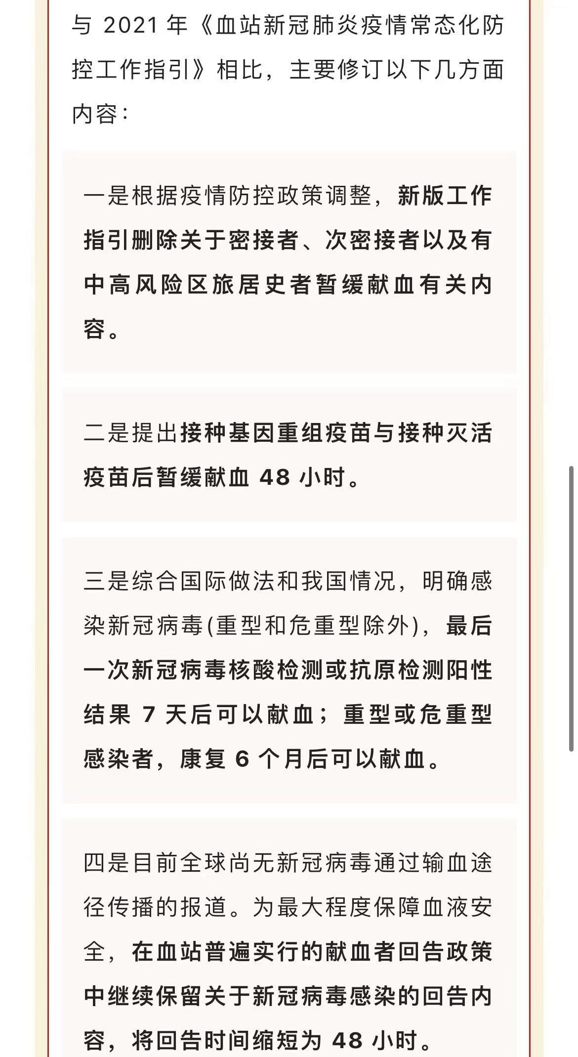 根据国家两部门前不久印发的《血站新冠病毒感染防控工作指引(第二版)》规定,新冠感染者转阴7天后可以献血,重型或危重型康复6个月后可以献血。