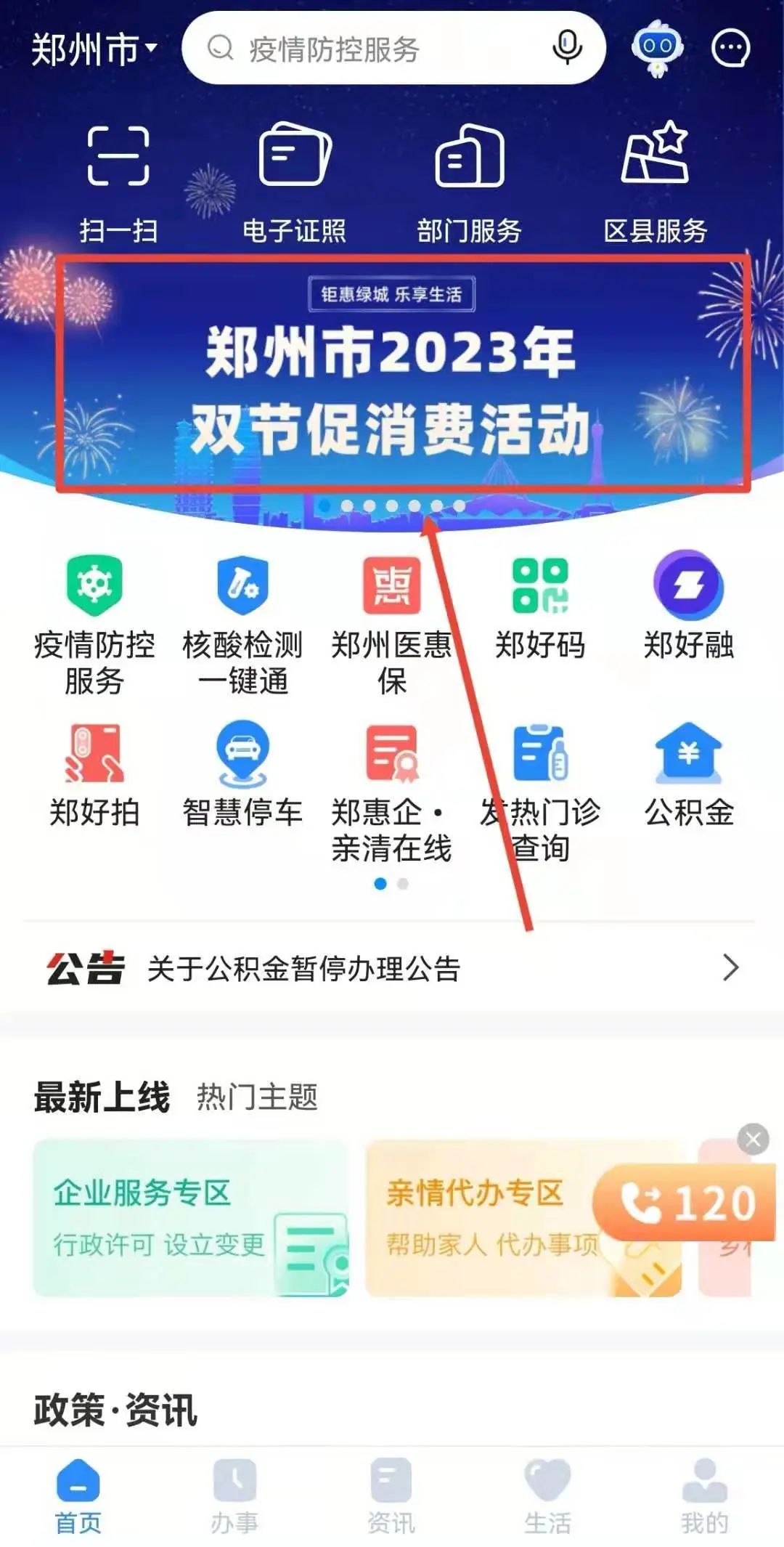 2023年1月5日上午10时,进入“郑好办”APP首页“郑州市2023年促消费活动”专区,点击“5000万汽车消费券”,即可进行资格校验。校验入口分为个人申报和企业申报两种。