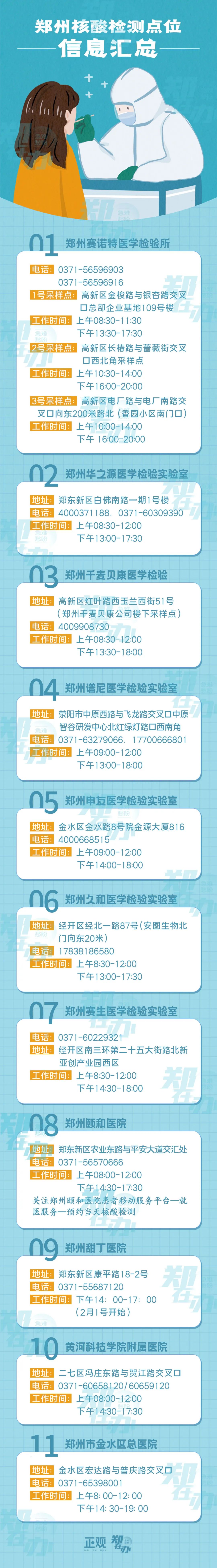 1月29日,经致电核实,正观新闻·郑在办整理了郑州市目前开展单人付费核酸检测业务的医学检验机构或医院,供有核酸检测需求的市民参考。