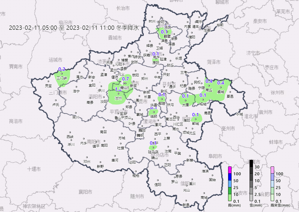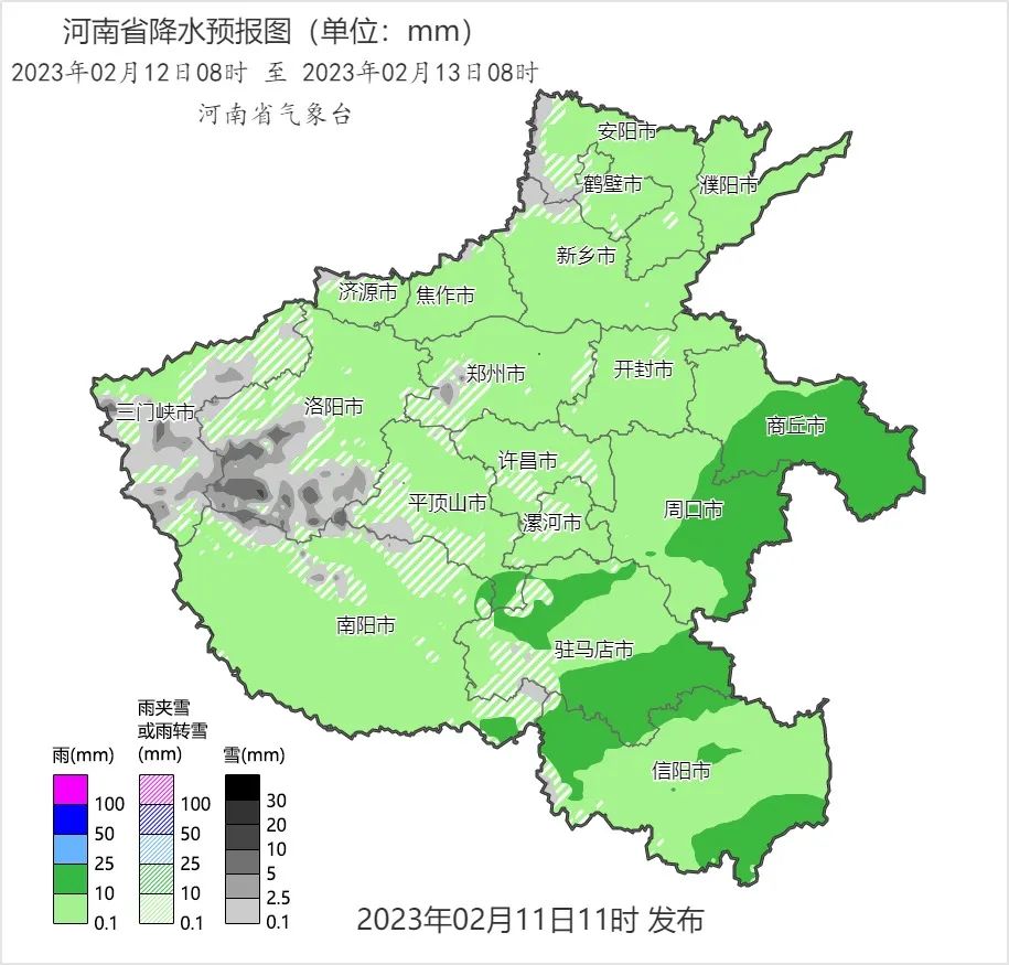 预报来源:河南省气象台2023年2月11日12时预报