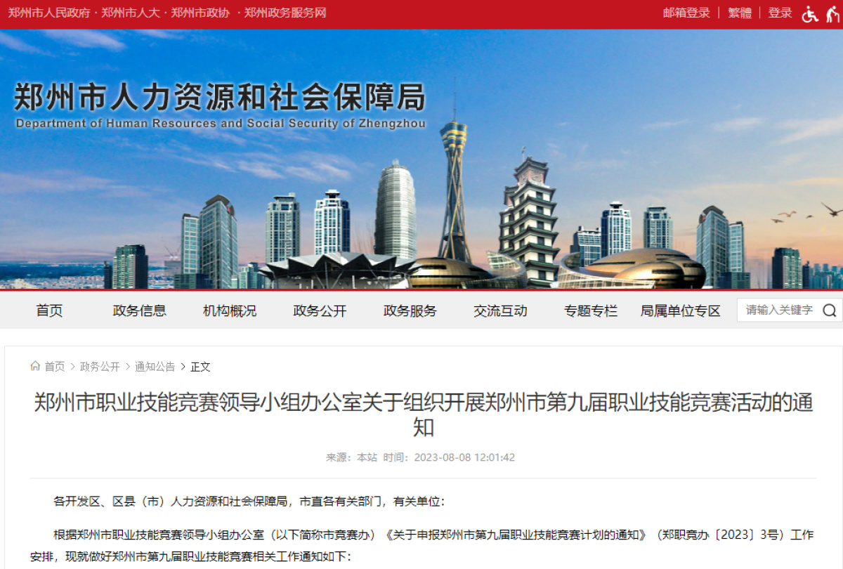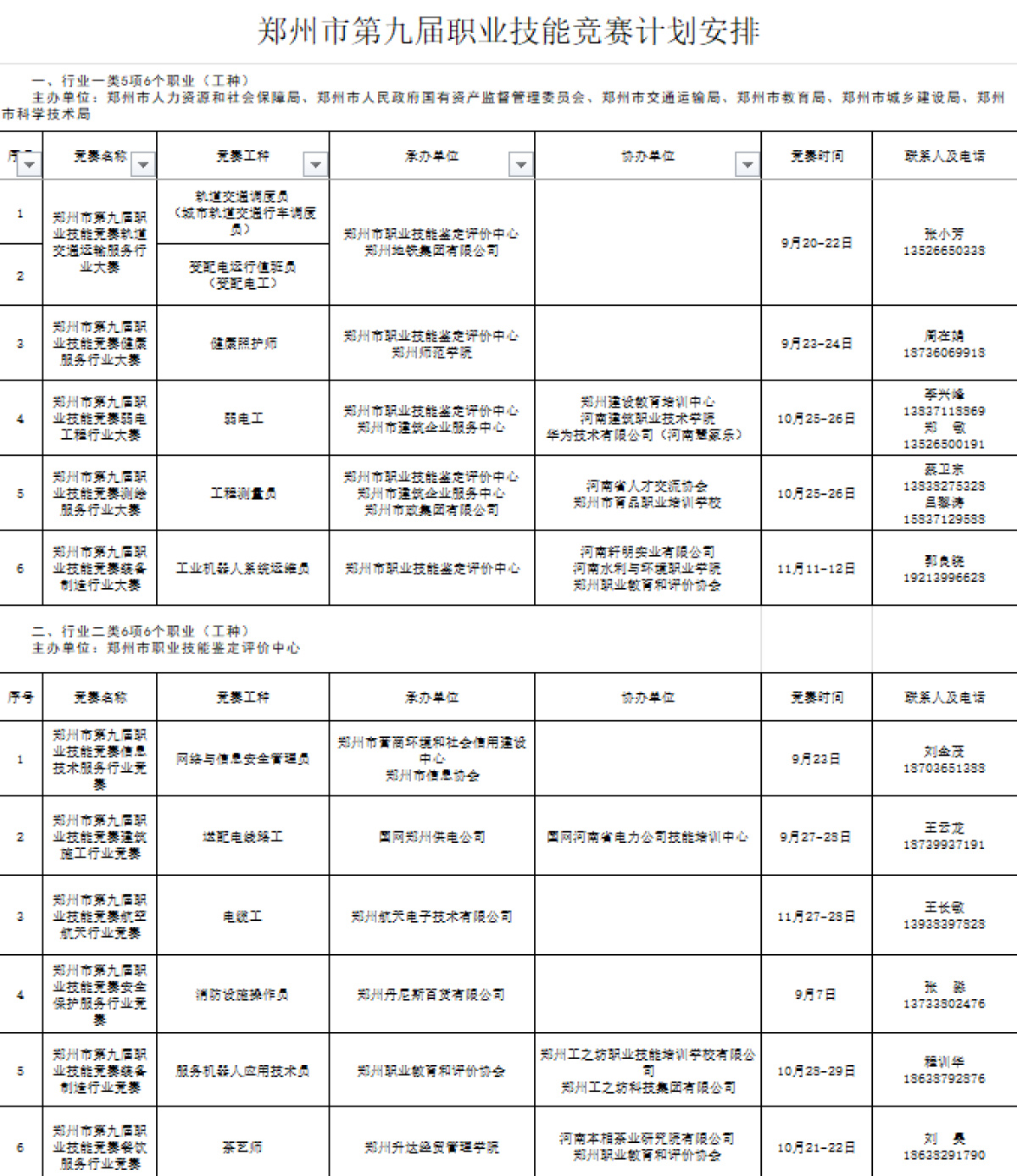 8月9日,大河报·豫视频记者从郑州市职业技能竞赛领导小组办公室了解到,郑州市第九届职业技能竞赛将于2023年9月至11月举办,本次竞赛内容共有12个职业(工种),其中,行业一类赛5项6个职业(工种)、行业二类赛6项6个职业(工种),预计于2023年11月30日前完成全部赛项比拼。在竞赛中获得第一名的职工选手,可按规定申报“郑州市五一劳动奖章”荣誉称号。