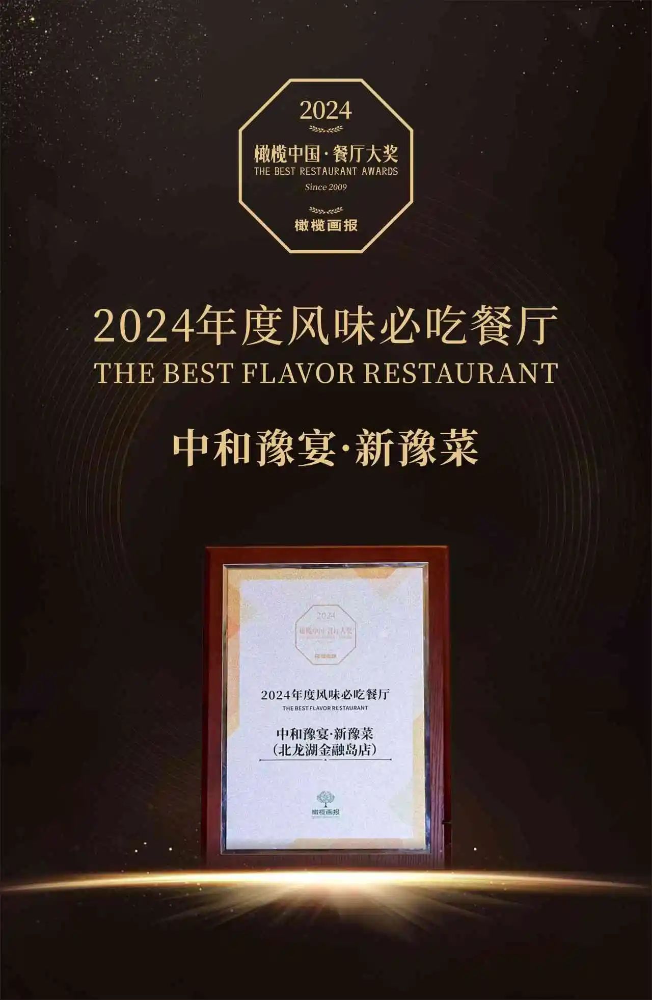 阿五旗下品质餐厅中和豫宴·新豫菜开业近半年荣获“橄榄中国·餐厅大奖--2024年度风味必吃餐厅”,也是郑州此次唯一登榜品牌!