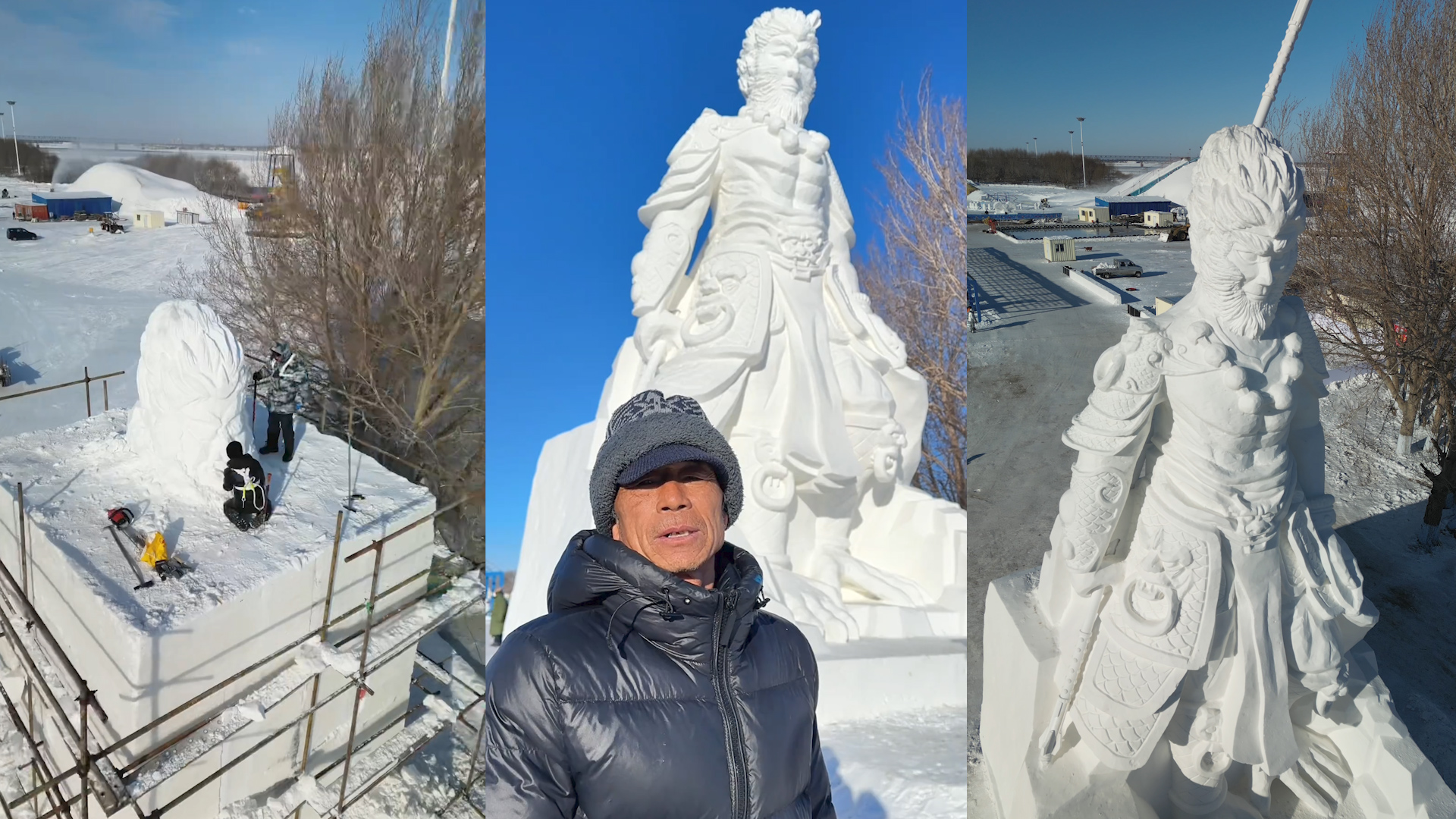 佳木斯冰雪大世界的“大圣”图纸是景区提供的,画犟他们完全是按图纸施工。这个造型来源于今年很火的游戏《黑神话:悟空》,严格意义上说,他们这个雪雕并不是“大圣”,是还在成佛之路上的大圣,作品是想要表达悟空经历很多困难、坎坷最后成佛的坚韧不拔的精神。