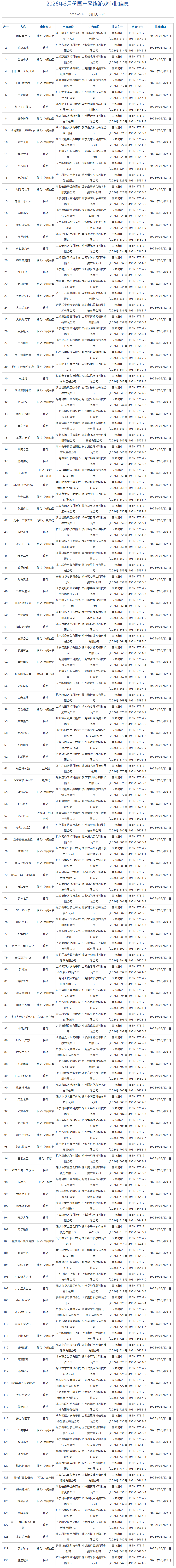 【大河财立方消息】3月25日,国家新闻出版署公布2026年3月份国产网络游戏审批信息,共130款游戏获批。