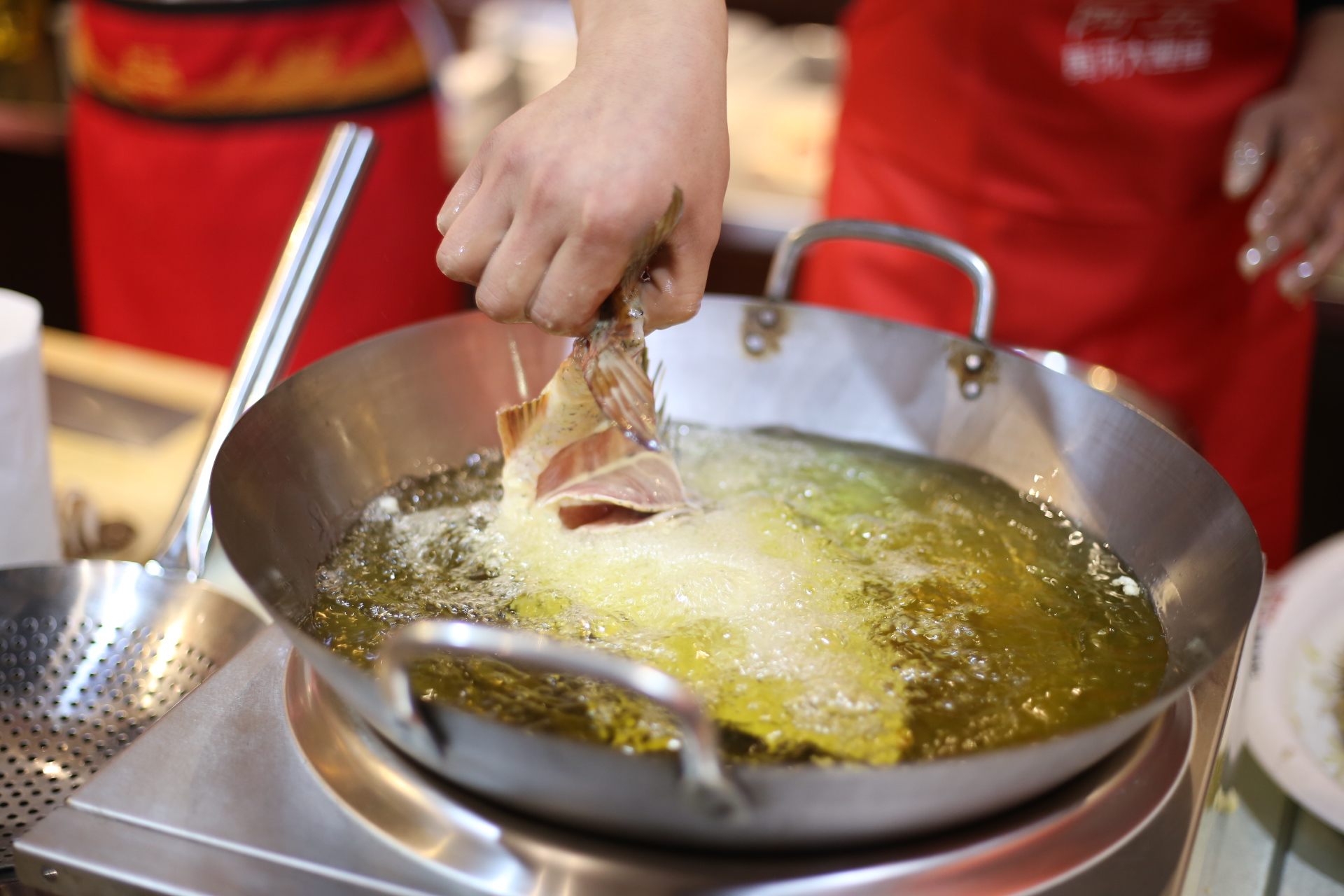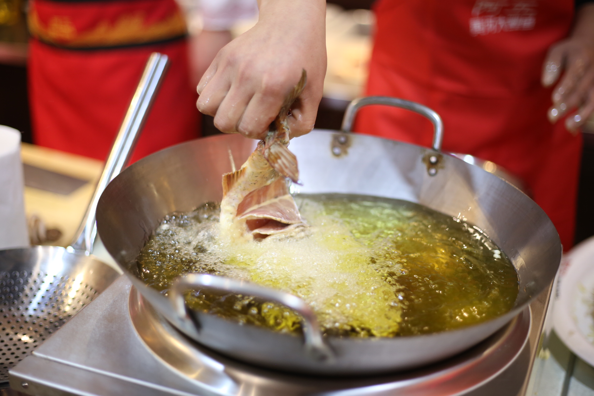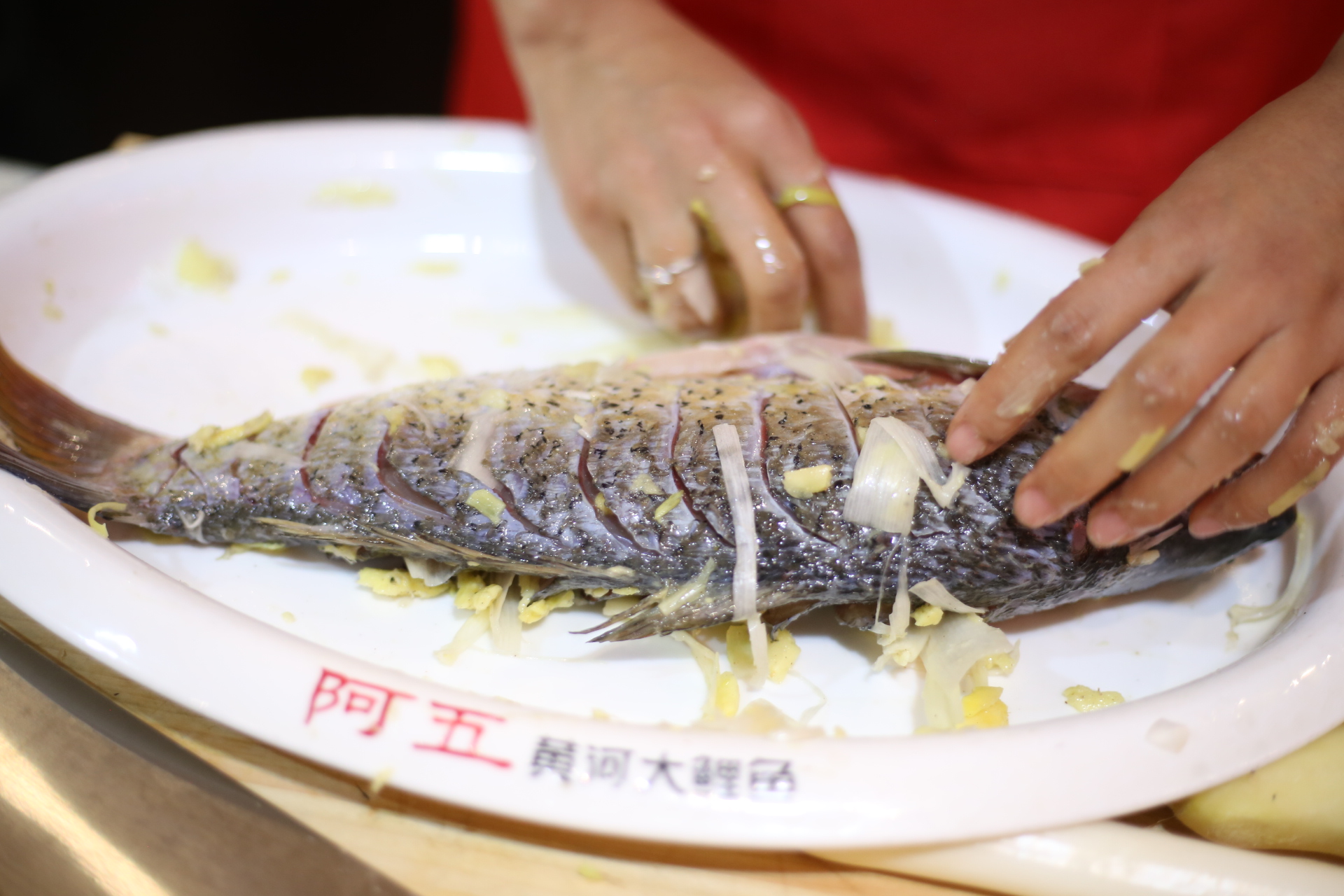选手们有条不紊的开始对大鲤鱼进行制作。