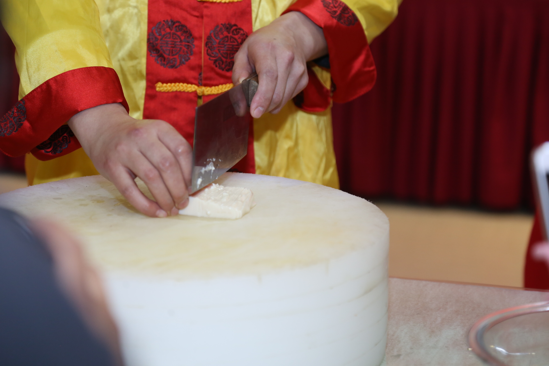 接下来,大家欣赏的绝技项目是:蒙眼切豆腐丝穿针,表演者:田韶卿。
