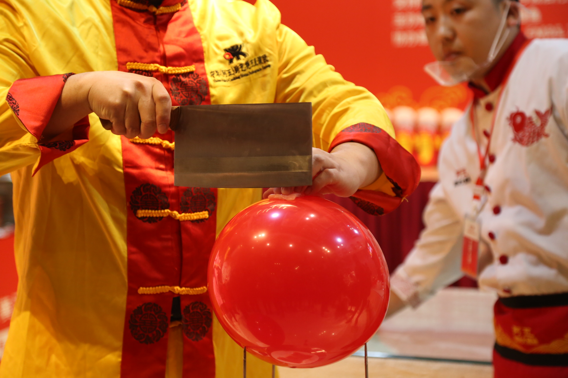 在工作人员紧张统计比分的时间,大家一起欣赏由中华(阿五)厨艺绝技表演团,为大家带来的中华厨艺绝技表演。首先为大家表演的是,脚踩鸡蛋钢针气球上切肉丝,表演者:郭威。