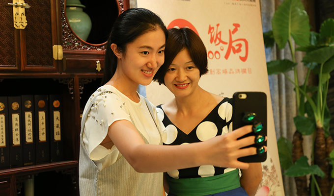 7月27日晚,尹宁做客第12期《100°饭局》,和网友们亲切地合影留念。