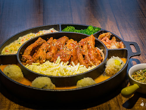 向往异国料理的吃货们,通常是这样证明他看过韩剧的:芝士年糕火锅、芝士排骨、拉面炒年糕、紫菜包饭、韩式炸鸡、海鲜辛拉面、石锅饭、水煎烤肉……此时此刻,在郑州。你不需要隔着冷冰冰的吃播屏幕对以上美食念念不忘了,这家地道融合韩餐你只要吃过,绝对要比虐心玛丽苏韩剧来得印象深刻得多。