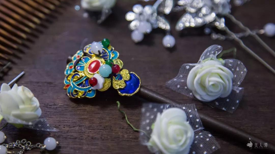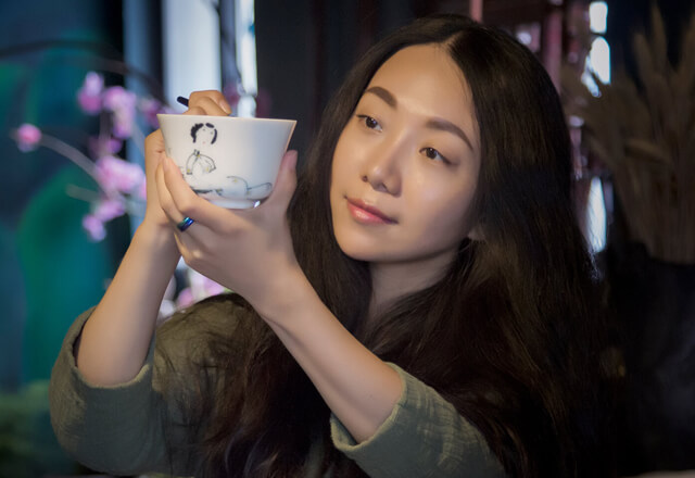 说是工作室,其实就是一个堆放汉服的角落。探班前她略显担忧地问我,我这边这么寒酸,会不会拉低你们栏目的档次。再细看,这套二居室的房子,的确是辟出了客厅的一角:摆放了两个古色古香的大木衣架,一盏细长穿衣镜,一条当作梳妆台的长桌。桌台上摆满了各色传统头饰、首饰。另一侧的矮茶几上,铺着一张小楷的临摹手抄和一截奶白的宣纸,一碗洗墨的清水小砚。临临帖、养养鱼,据说是她闲暇时的消遣。