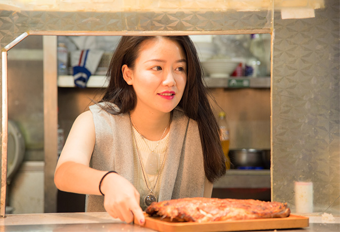 沿着紧实的纹路撕下一小排,还能感受到鲜肉与熟肉间藕断丝连的暧昧纠缠,烤制前特别蘸刷的蜜汁酱,早已与溢出的肉