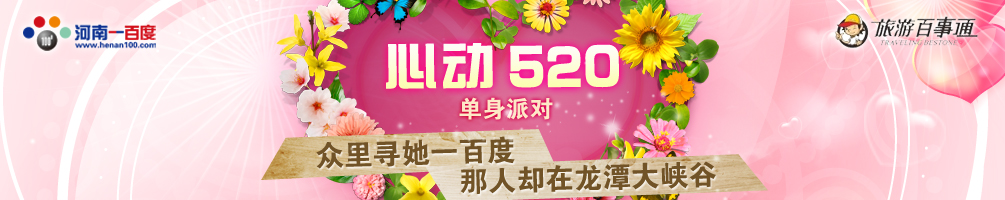 5月19日,由河南一百度旅游频道和旅游百事通联合推出的“众里寻她一百度,那人却在龙潭大峡谷”心动520单身派对在龙潭大峡谷景区拉开序幕,1000名单身男女参加了这次活动。并有10对男女现场表白……[详细]