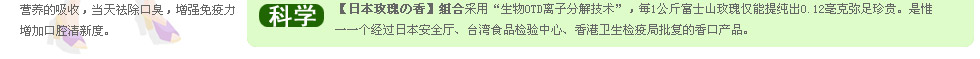 玫瑰の香由日本川弘株式会社科技研发,是日本纯进口的,它的研发技术也是国际领先的,通过十年临床验证3000万患者,治愈率为99.8%,彻底祛除口臭。希望您继续服用巩固,将口臭彻底根除。 |