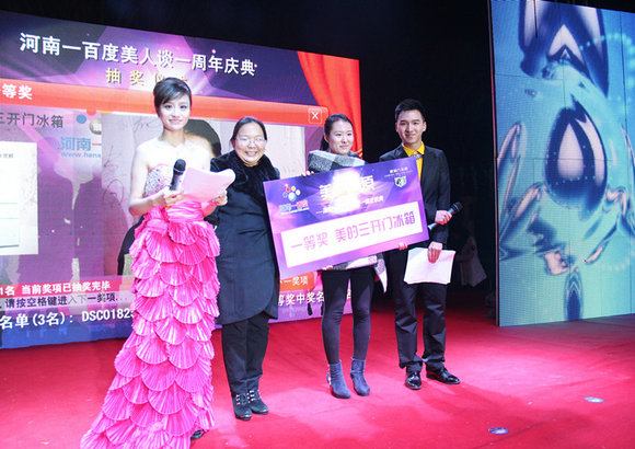 河南一百度美人谈上线一周年庆典活动抽奖环节一等奖获得者上台领奖
