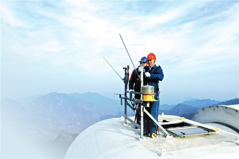 南召望远风电场运维值班人员在场站包饺子矗立在山脊上的风机运维值班人员为风机“体检”腊月二十七,豫南的群山已经染上海拔1300米的山脊上,却是另一番景象。