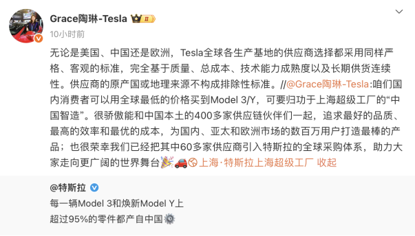 11月26日,针对有消息称特斯拉要求供应商避免使用中国制造的零部件生产美国汽车,特斯拉中国相关负责人向大河财立方记者表示,网传内容为“不实消息”。同日上午,特斯拉全球