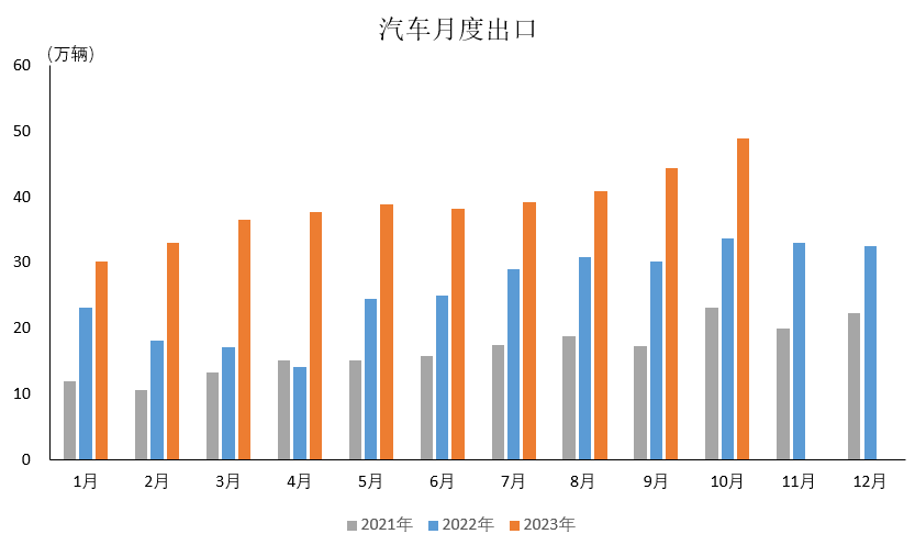 数据显示,10月,全国汽车出口48.8万辆,环比增长9.8%,同比增长44.2%。1-10月,汽车出口392.2万辆,同比增长59.7%。具体到新能源汽车,10月,新能源汽车出口12.4万辆,环比增长29.3%,同
