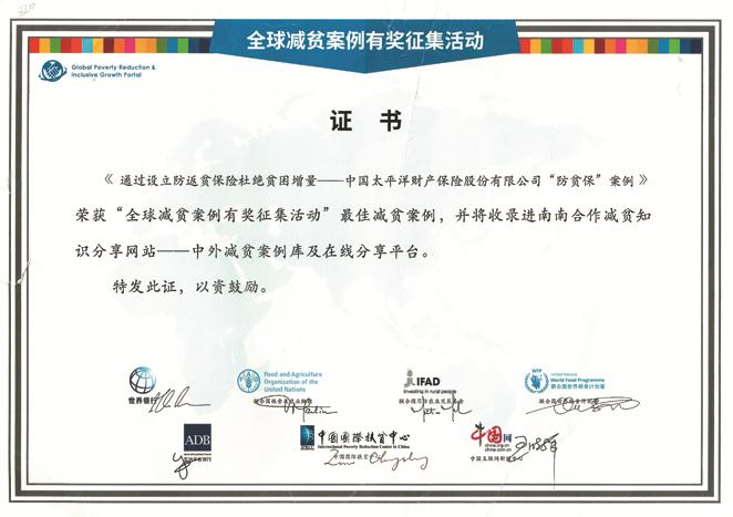 近日,中国太保旗下中国太保产险的“防贫保”案例从来自全球30多个国家共820个报送案例中脱颖而出,获颁第一届“全球减贫案例征集活动”最佳减贫案例,并被收录进南南合作