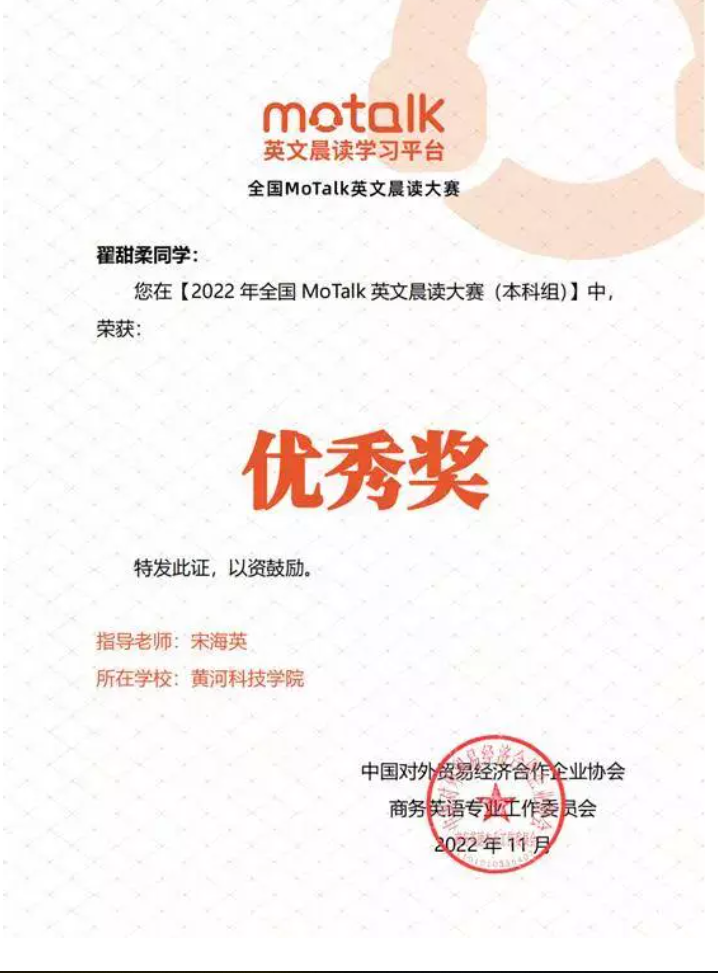 近日,黄河科技学院商学部外语科教中心传来喜讯,常军芳老师在第五届河南省本科高校教师课堂教学创新大赛外语教学赛道暨第十五届全国高校外语教学大赛河南省赛(英语专业小