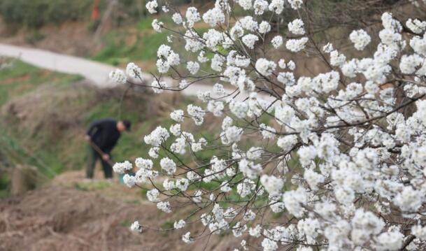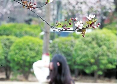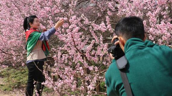 3月19日上午,郑州大学新校区的山桃花开得正盛,吸引了众多游客前来观赏。
