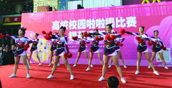 啦啦操作为一项受大众喜爱的集健身、娱乐于一体的体育项目,其团队组织已经遍布各大高校和中小学,是国家、省、市各类运动会不可缺少的项目。