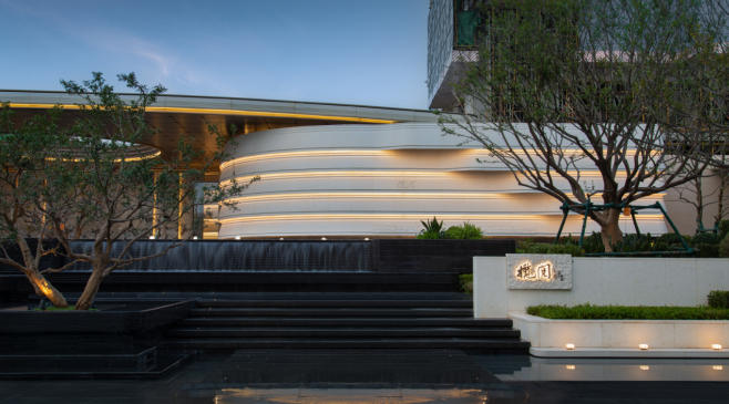 招商·揽阅的空间价值,不仅体现在室内空间的设计上,更在于其将室内空间与社区场景、外部资源的无缝融合,让空间体验延伸至生活的每一个维度。项目以“永不落幕的河岸剧场”为理念,打造约3500㎡酒店式双会所,涵盖无边际泳池、家庭轰趴馆、落日茶亭等多元场景,与室内空间形成互补,让家庭生活的边界不断拓展。