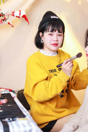 改造思路:丽丽的眉眼间距窄,眉毛上挑会显得人比较精神;嘴唇厚,可以就势打造嘟嘟唇;眼泡肿,在眼影选择上可以使用哑光色系,避免使用大片珠光眼影。 在平时穿搭稍微遮住肚子和大腿上肉就可以。年龄比较小,可以选择清新甜美运动的。