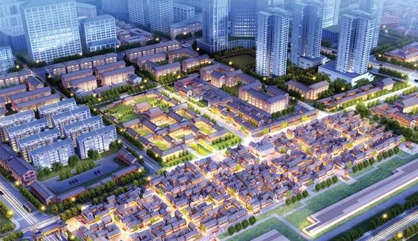 本次规划范围即商都文化区的夕阳楼片区(一期)及书院南片区,效果图如下: