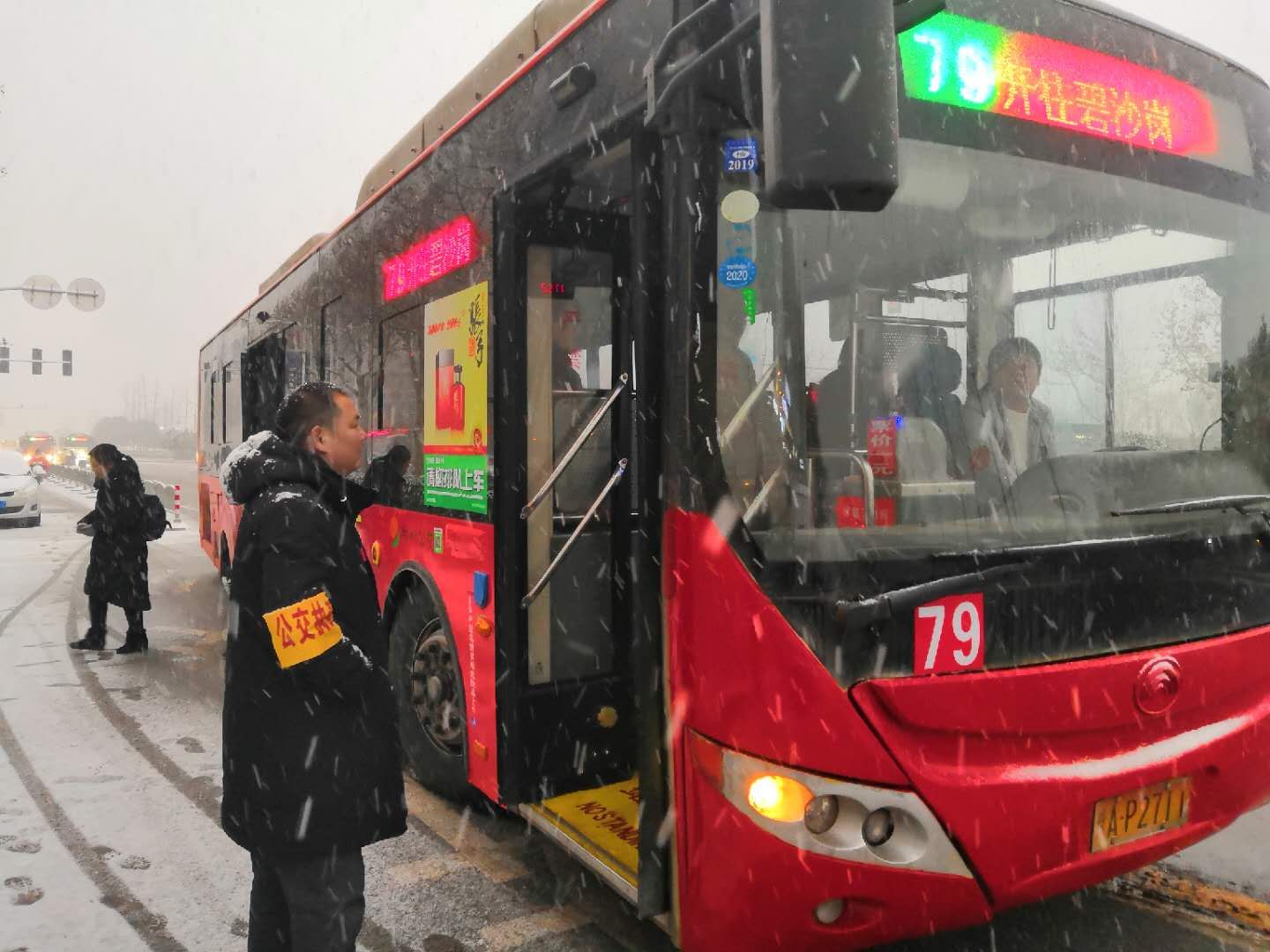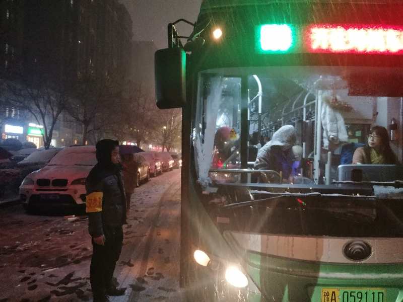 在高架桥路口、涵洞、在路面湿滑的交叉路口、在调度室、在公交线路沿途的公交站牌,或执勤、或疏导、或解答咨询、或站牌融雪……郑州公交人一直在忙碌。