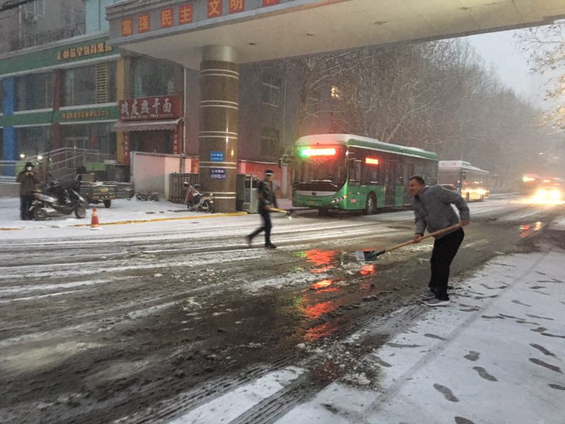 为保证14日郑州公交的顺利运营,他们公交人很多主动请战,即便已经下班仍决定夜宿调度室,自13日晚开始便开始加班加点,搬运融雪剂,清除重点路段积雪,在重点路段执勤,疏导交通。