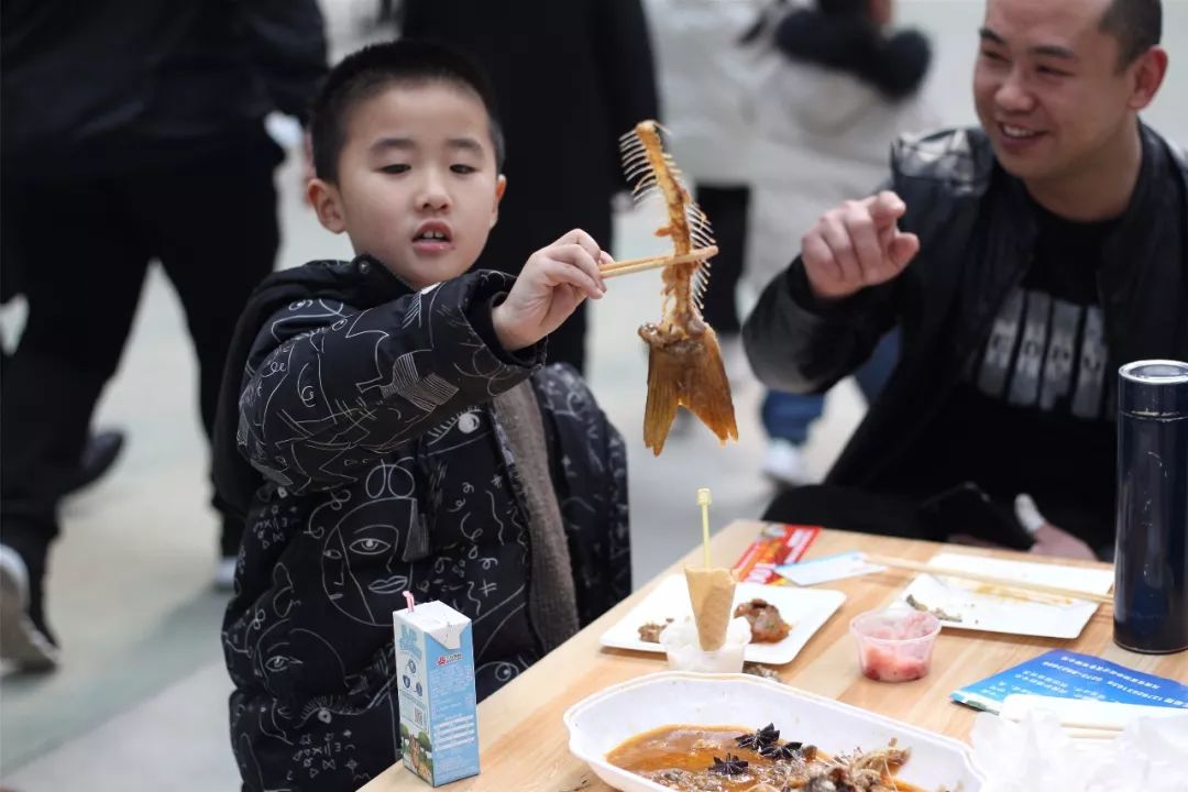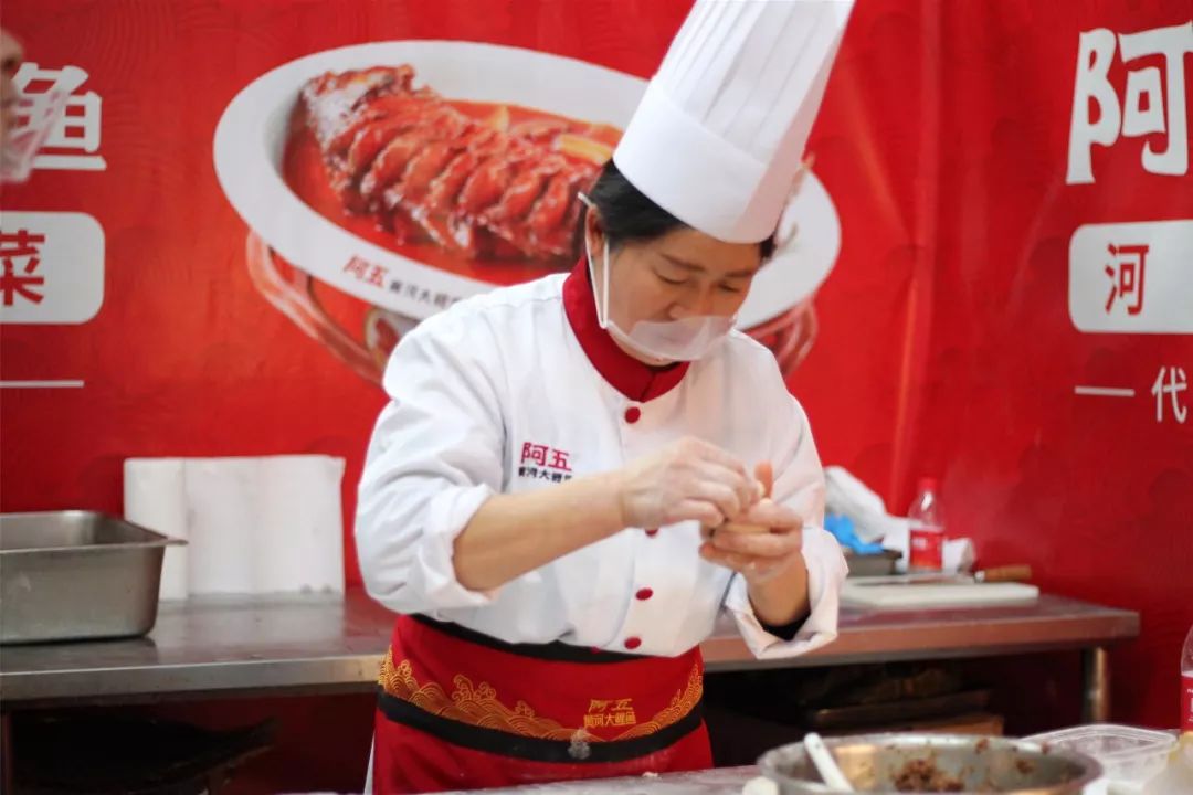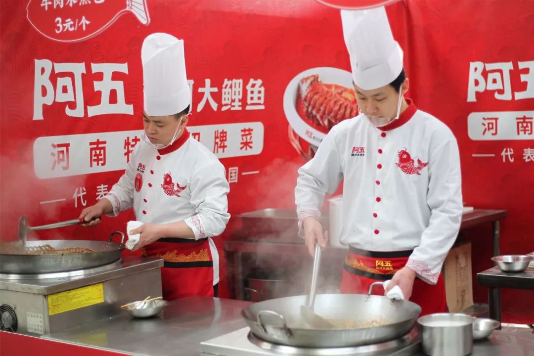 活动现场,阿五黄河大鲤鱼摊位前人声鼎沸。无数吃货慕名而来,围观品尝。