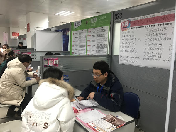 "加入我们吧,有舞台,有未来!""销售没有工作经验的限制,应届生也可以!""包吃包住,实习期就能拿2千5百元,再叠加销售提成!"……2月18日,河南省2019年春季大型公益招聘活动第二阶段第一天的招聘会在河南人才市场举行。郑州一早便飘起了雪花,但寒冷的天气并未阻挡求职者的脚步,招聘现场气氛活跃,热闹异常。