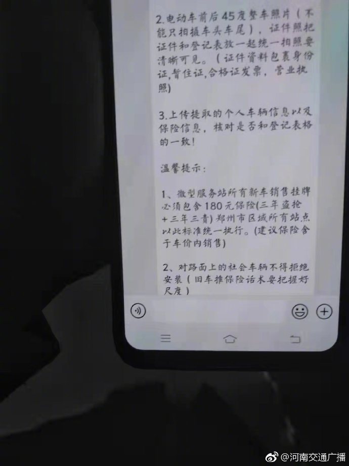 近日,有车友反应,郑州博学路部分电动自行车上牌点在上牌时要求车主强制购买保险,否则不予上牌。实地调查中店家声称,年前确实是免费上牌保险自愿,但节后接到中国人保通知,要求后续上牌人必须购买保险。对此人保财险工作人员表示,公司从未要求网点强卖保险,由于目前全市网点较多,可能有部分网点介绍保险业务时语气过硬或违规操作现象。